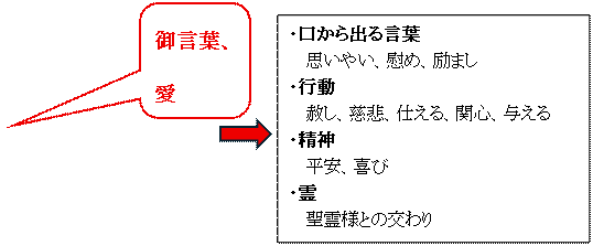 更に心の倉に良い物を入れます。聖霊様によって隣人を愛する事の出来る力を受け取ります。