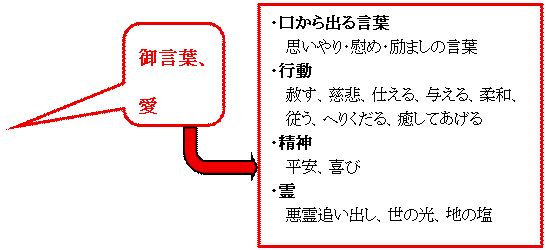 聖霊様に入って頂き、愛、喜び、平安等の実を結び実践します。