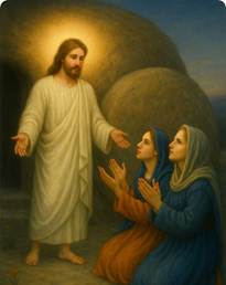 28:1 さて、安息日が終わって週の初めの日の明け方、マグダラのマリアともう一人のマリアが墓を見に行った。28:2すると見よ、大きな地震が起こった。主の使いが天から降りて来て石をわきに転がし、その上に座ったからである。28:3その姿は稲妻のようで、衣は雪のように白かった。28:4 その恐ろしさに番兵たちは震え上がり、死人のようになった。28:5御使いは女たちに言った「あなたがたは、恐れることはありません。十字架につけられたイエスを捜しているのは分かっています。28:6ここにはおられません。前から言っておられたとおり、よみがえられたのです。さあ、納められていた場所を見なさい。28:7そして、急いで行って弟子たちに伝えなさい。『イエスは死人の中からよみがえられました。そして、あなたがたより先にガリラヤに行かれます。そこでお会いできます』と。いいですか、私は確かにあなたがたに伝えました。」28:8彼女たちは恐ろしくはあったが大いに喜んで、急いで墓から立ち去り、弟子たちに知らせようと走って行った。28:9すると見よ、イエスが「おはよう」と言って彼女たちの前に現れた。彼女たちは近寄ってその足を抱き、イエスを拝した。28:10イエスは言われた。「恐れることはありません。行って、わたしの兄弟たちに、ガリラヤに行くように言いなさい。そこでわたしに会えます。」