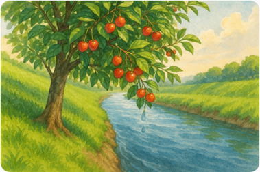 良い地(清められた心)に植えられた木(人)は太陽の光(みことば)を受け、綺麗な川の水(聖霊様)を吸収して甘い実(愛の実)を付けます。